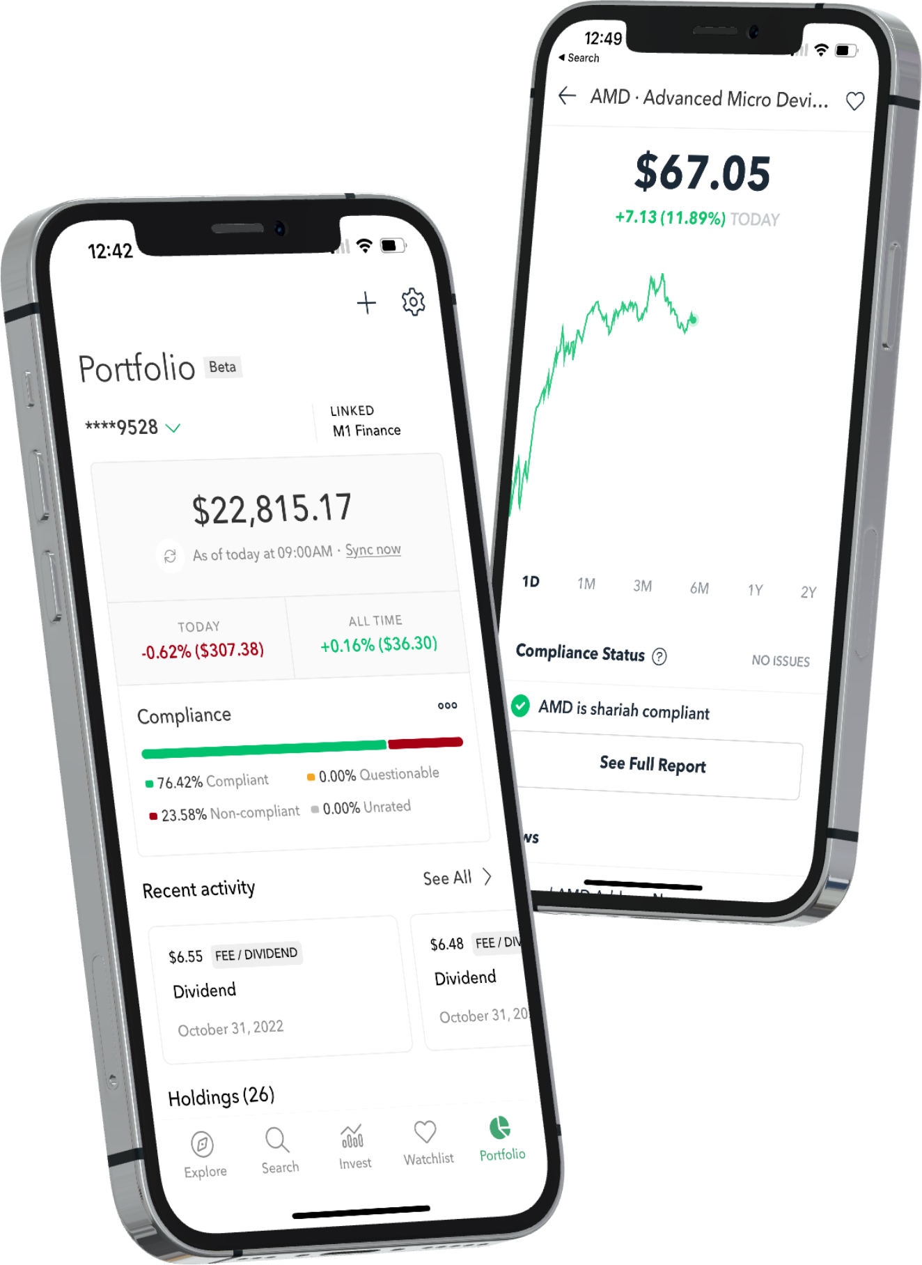 Best part is you can sync your Robinhood portfolio and then the app will say the shari'a compliance status, which allowed me to get rid of non complaint stocks. The second best part is it shows alternative sharia compliant stocks. It's the best app with one of the only kind.